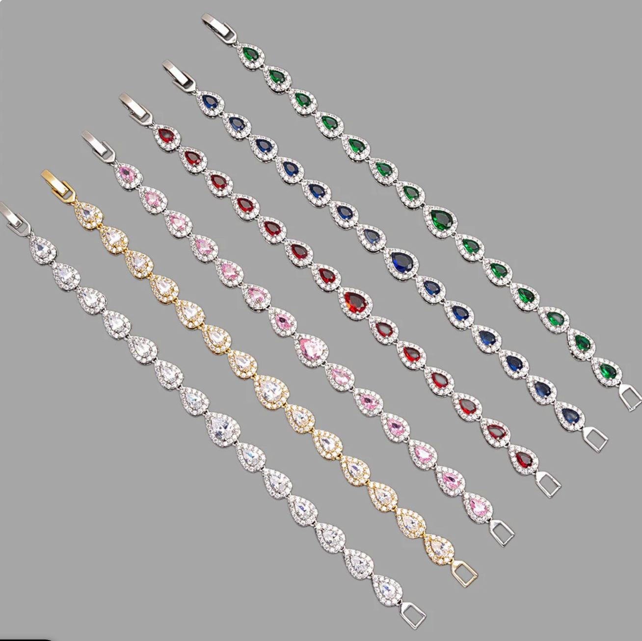 Elevate your style with these stunning bracelets featuring a unique tear drop design that glistens in any light, making it a must-have accessory for every occasion.